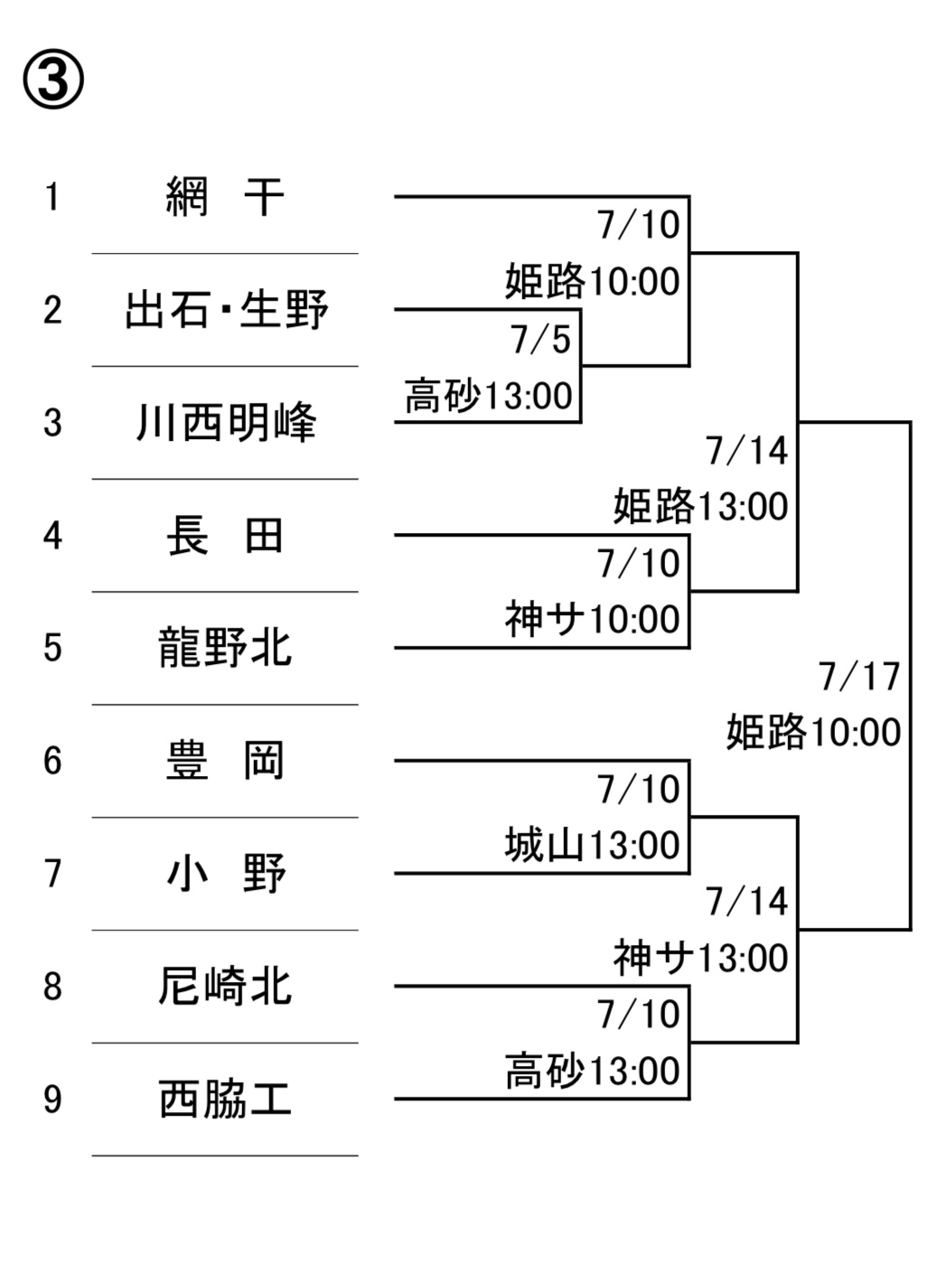 「第107回全国高校野球選手権兵庫大会組み合わせ」
